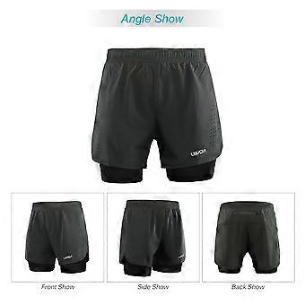 Trainingsshorts für Herren, 2-in-1, schnelltrocknend, atmungsaktiv, für aktives Training, Joggen, Marathon und Radfahren