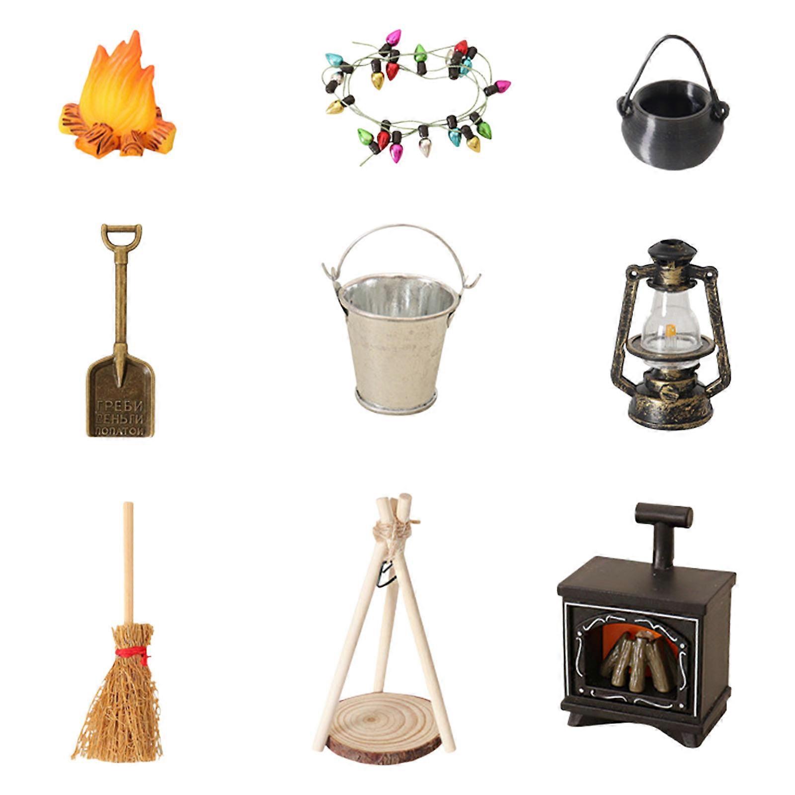 Miniature Camping Scene Craft With Illuminated Lanterns Broom Accessories For Model Enthusiasts Multicolor