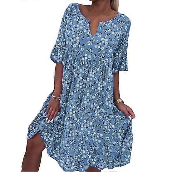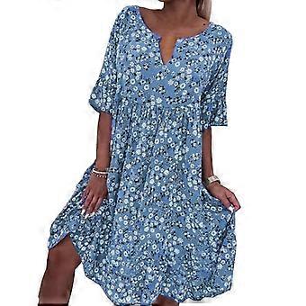 Mid Length Dress Casual Fashion Short Sleeve V-neck Loose Daily Wear Polyester Flower Print Beach Dress Vacation Supply