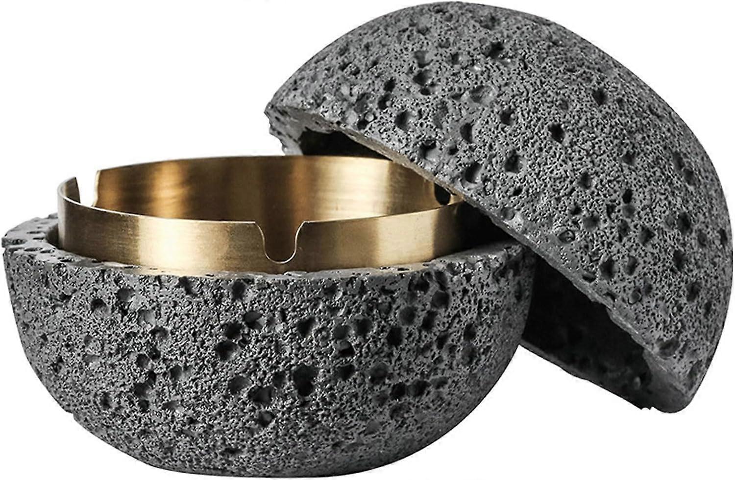 Fashion Trash Can, Concrete + Metal Inner Cylinder Easy to Clean, Dark Gray