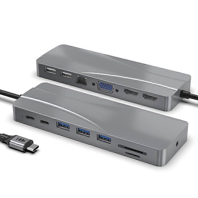 Multi-function type-c top docking station PD charging + multimedia interface + VGA with network port HUB splitter