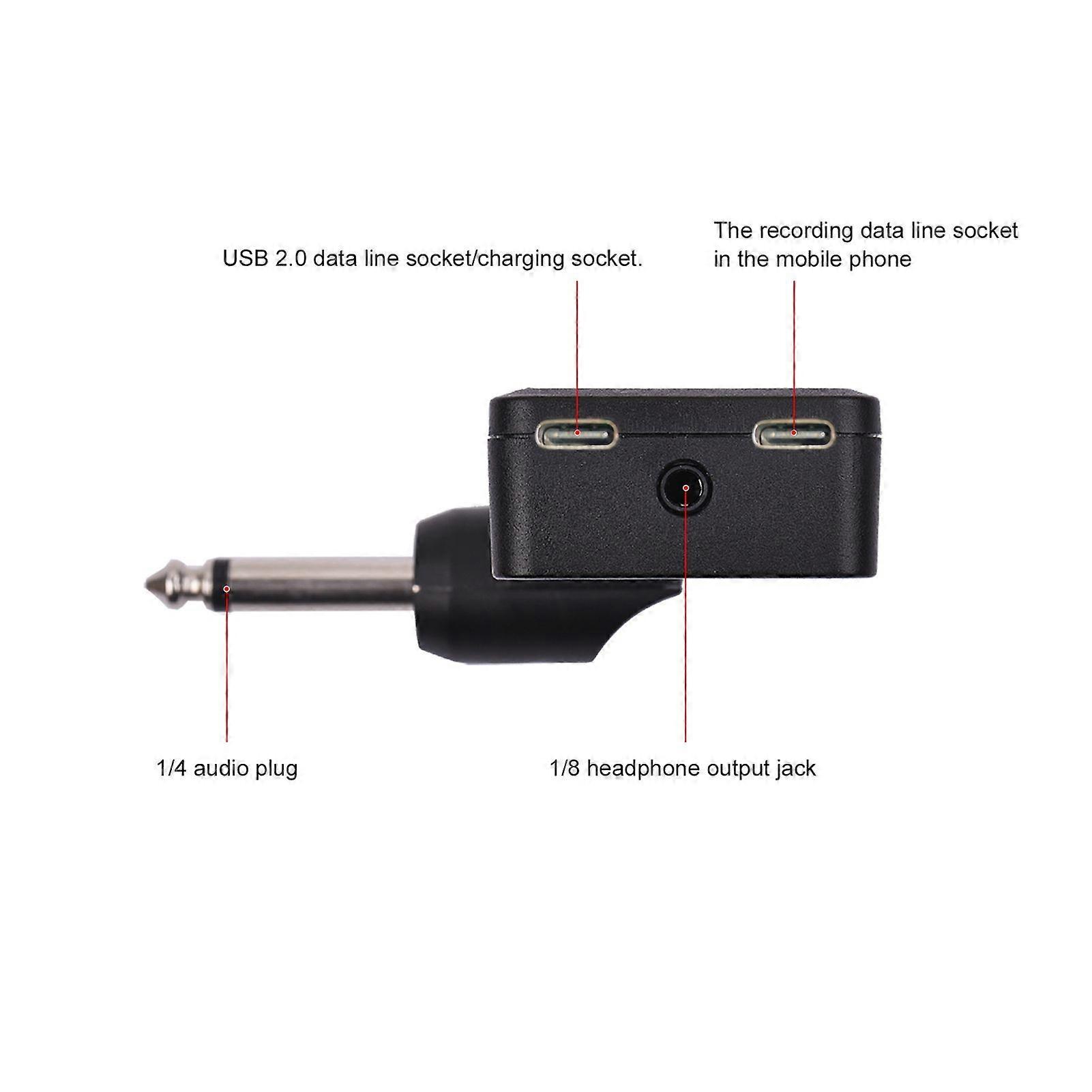 Feature:1. Multi-Effect -- Contains 10 classic Preamp, two commonly used modulation effects Chorus\u0026Phaser, a Hall Reverb effect, 10 classic IR cabinet simulations, and a high precision Tuner.2. Internal Recording - Provides a high-quality internal recording function, plug into the USB port of the device through a dedicated data cable for internal recording, and then connect to your mobile phone or computer for audio recording.3. More Features - Wireless music playback, bypass, volume settng, tone, tuning, and gain adjustment.4. Mini\u0026Rechargeable -- It is lightweight and portable, and able to work for about 5-6 hours after a fully charge, convenient for you to carry around.5. Practice Amp - Nice for beginner to practice electric guitar without creating much noise. The amp allows you to produce sound through headphone or wireless earbuds. Equipped with standard USB2.0 port, 1/8-inch(3.5mm) headphone output jack, and 1/4-inch audio plug.Specification:The mini amplifier has multi-effects, high-quality mobile phone recording, wireless music playback, bypass mode, adjustable volume, and other functions in one.Features:Multi-Effect -- Contains 10 classic Preamp, two commonly used modulation effects Chorus&Phaser, a Hall Reverb effect, 10 classic IR cabinet simulations, and a high precision Tuner.Internal Recording - Provides a high-quality internal recording function, plug into the USB port of the device through a dedicated data cable for internal recording, and then connect to your mobile phone or computer for audio recording.More Features - Wireless music playback, bypass, volume settng, tone, tuning, and gain adjustment.Mini&Rechargeable -- It is lightweight and portable, and able to work for about 5-6 hours after a fully charge, convenient for you to carry around.Practice Amp - Nice for beginner to practice electric guitar without creating much noise. The amp allows you to produce sound through headphone or wireless earbuds. Equipped with standard USB2.0 port, 1/8-inch(3.5mm) headphone output jack, and 1/4-inch audio plug.Specifications:Material: ABSColor: GoldInput: Standard 1/4-inch interface mono/TSOutput: Standard 1/8-inch interface mono/TSSampling Rate: 48K/24bitBattery Capacity: 780mAhWork Time: about 5 to 6 hoursPower Supply: DC5V, >300mA power adapterItem Size: 8.4*8*2.8cm / 3.3*3.14*1.1inItem Weight: 55g / 1.94ozPackage Size: 10.5*9*3.5cm / 4.13*3.54*1.37inPackage Weight: 114g / 4.02ozPacking List:1 * Headphone Amplifier1 * Charging Cable1 * Internal Recording Cable1 * User ManualPackage List:1 * Headphone Amplifier1 * Charging Cable1 * Internal Recording Cable1 * User Manual