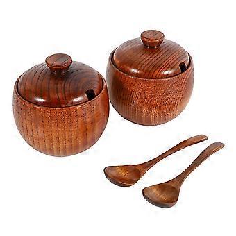2Pcs Glas Gewürzdose Zuckerdose mit Deckel Löffel Holz Box Zuckertopf Salz Gläser Küche Container Con