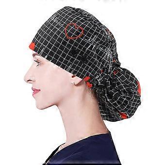 OP-Haube mit Knöpfen und Zopftasche, verstellbare OP-Haube mit Schweißband für Frauen mit langem Haar