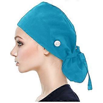 OP-Hauben mit Knöpfen, himmelblaue Bouffant-Haube für langes Haar, verstellbar, atmungsaktiv