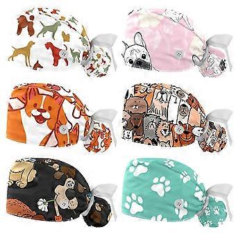 Bedruckte Schwesternmütze, staubdicht, schweißabsorbierend, aus Baumwolle, 1 Set, für den Heimgebrauch, Outdoor-Arbeitsumgebung