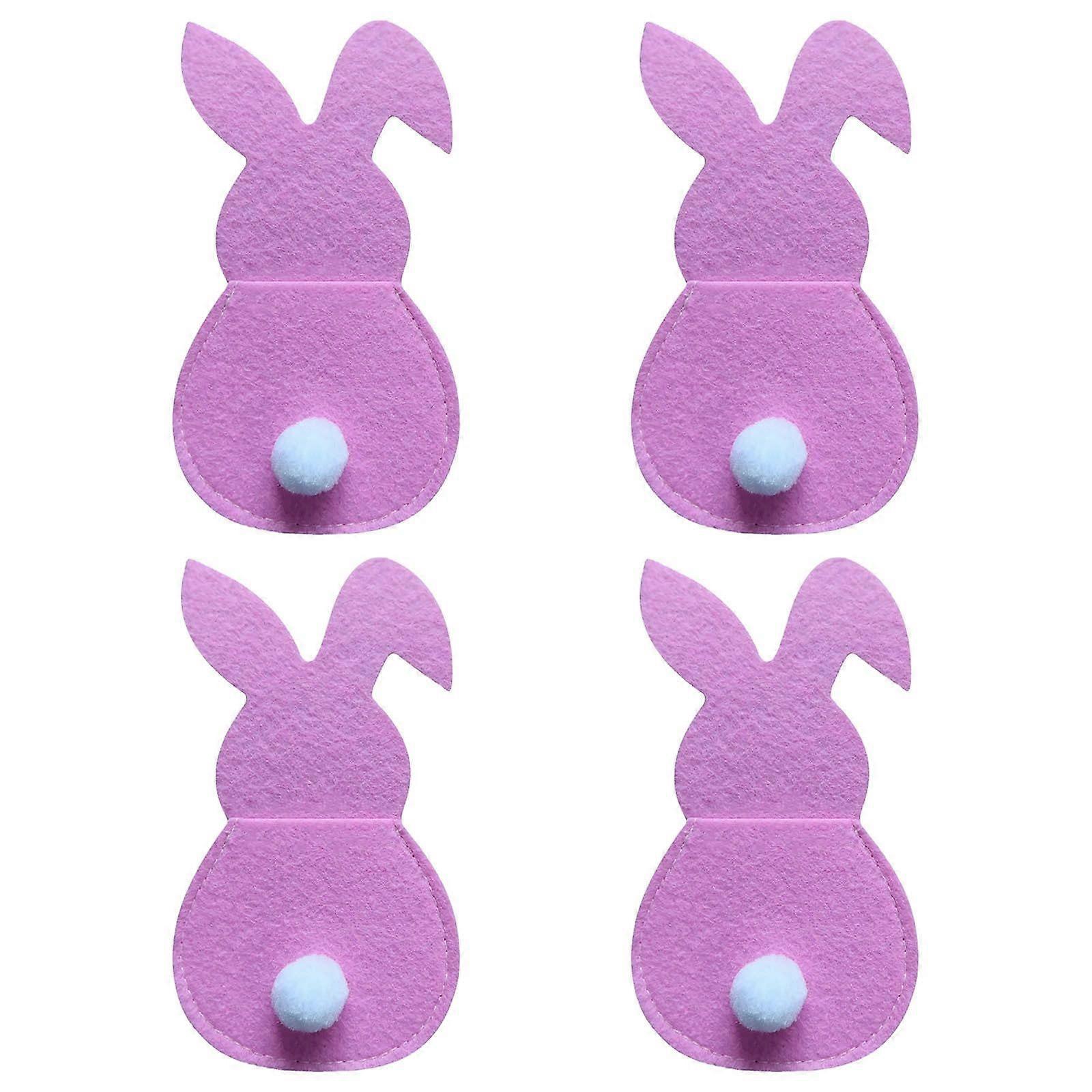 Set Of 4 Bunny Flatware Holders Easter Bunny Cutlery Bag Rabbit Cutlery Set With Tail Features: Spruce up your table for Easter with this Set of 4 Bunny Flatware Holders. Each bunny-shaped holder features a cotton tail and opens from the top, making it easy to slip in your flatware pieces. multiple sets to have enough for all your guests. Type: Easter decoration items, can be used to decorate tableware Material:Cotton and polyesterEasy to carry: Each pack with case, convenient to carry in a backpack or purse. Please allow a slight deviation in color and measurement! Please understand, thank you! Reusable: Easy to clean and reusable. It is an environmental protection way to use reusable tableware. Product Description: Package include: 4 x Easter Cutlery Bags