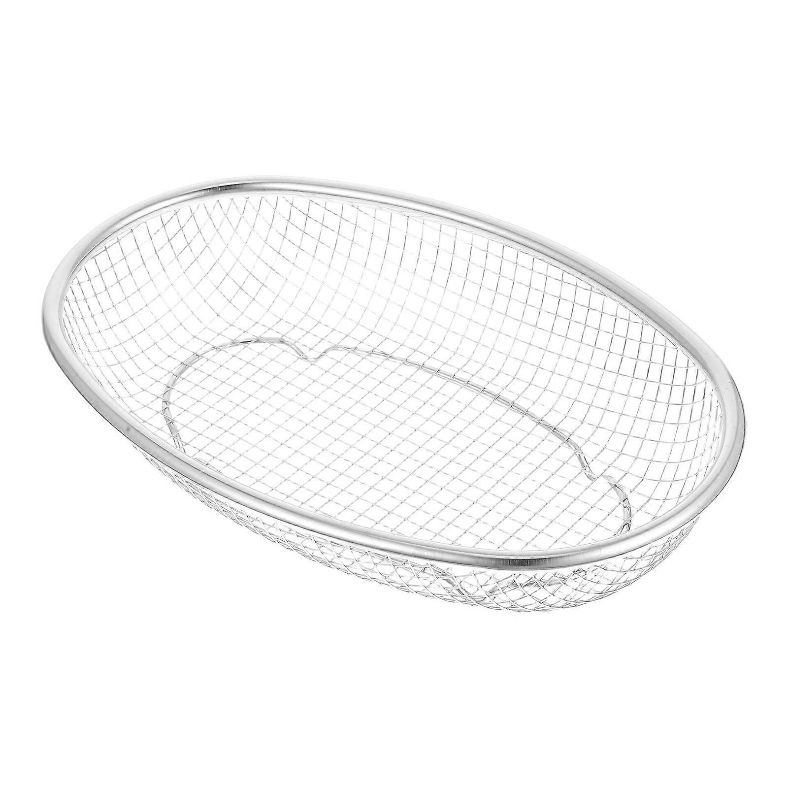 Stainless Steel Oval Basket For Bread Fruits Vegetables Mesh Strainer For Kitchen Food Drainer Easy To Clean Space-Saving