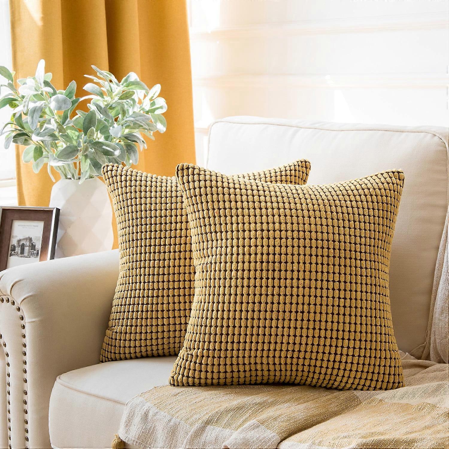 Phantoscope 18" x 18" Transitional Ginger Striped Polyester Blend Throw Pillow , ( 2 Count)