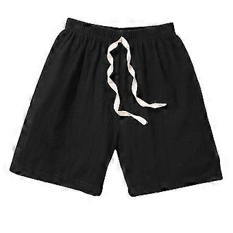 Linen Shorts for Kids, Solid Color Elastic Waist with Drawstring, Casual/Running/Beach Shorts, Soft Toddler Bottom, Black, 8-10 Years, Compatible