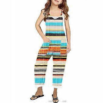 Sommer-Overall für Mädchen, Regenbogen-gestreift, Latzhose, lässig, ärmellos, lange Hose mit Taschen, 5-14 Jahre, mehrfarbig