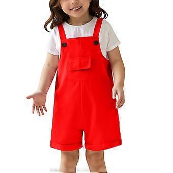 Mädchen-Latzhose, Sommeroutfit, verstellbare Träger, Shorts, einfarbig, süßer, lässiger Strampler mit Taschen, 6-7 Jahre