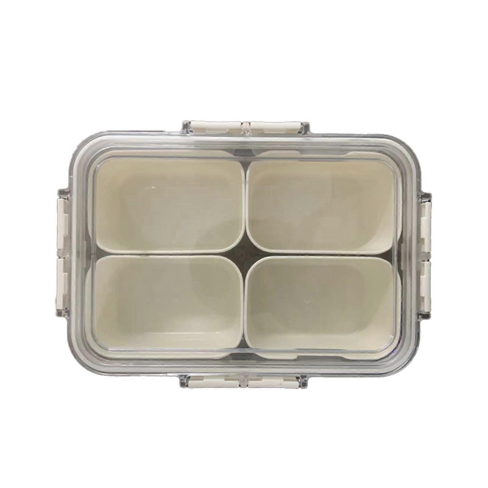 Plastic Divided Serving Tray with Lid & Handle - Portable Snack Box, Charcuterie Container, Food Storage for Party Picnic, Beige