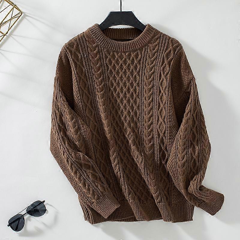 Plus Size Women's Twist Sweater Autumn and Winter Pullover Knit Sweater Solid Colour Round Neck Sweater
