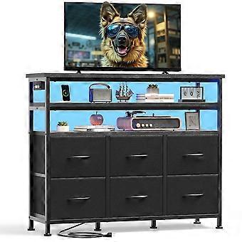 EDX Stoffkommode mit 6 Schubladen, Steckdosen und LED-Beleuchtung, TV-Möbel für Schlafzimmer, Wohnzimmer, Flur, Schwarz