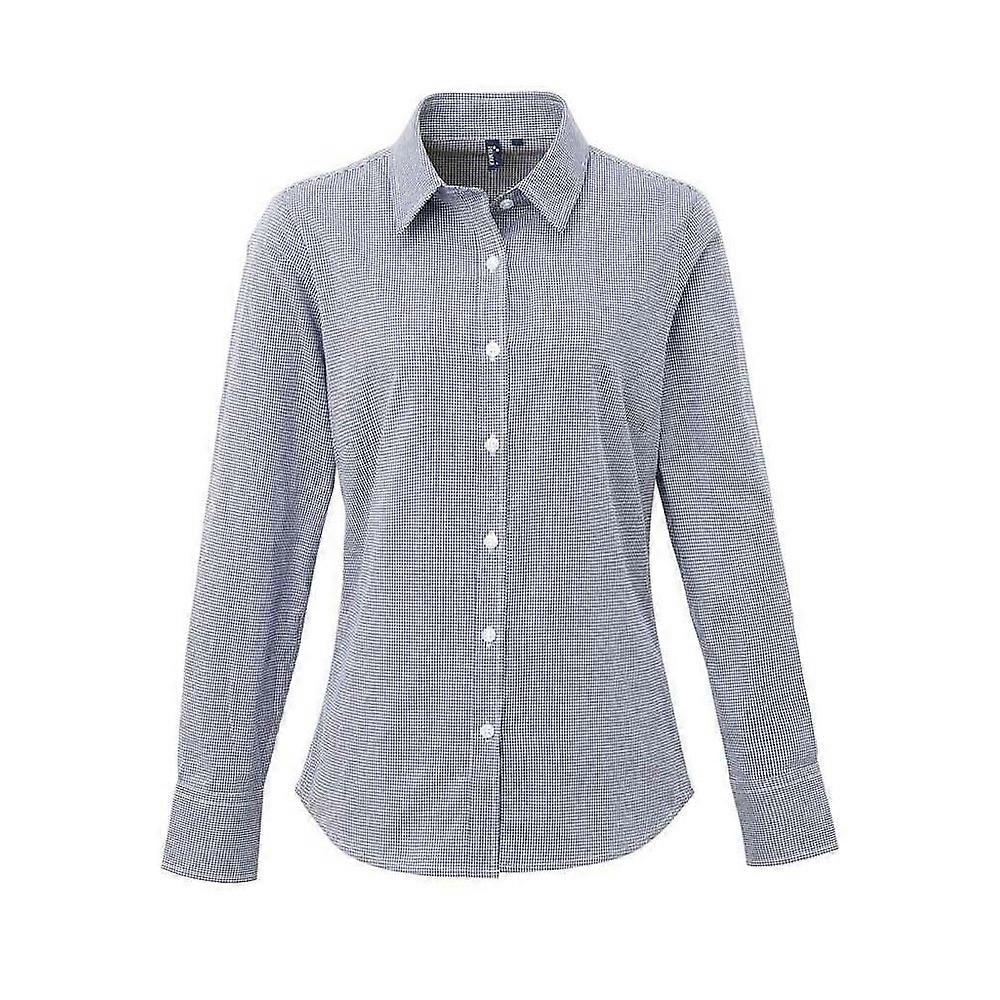 Premier Womens/Ladies Micro Gingham Check Cotton Long-Sleeved Shirt