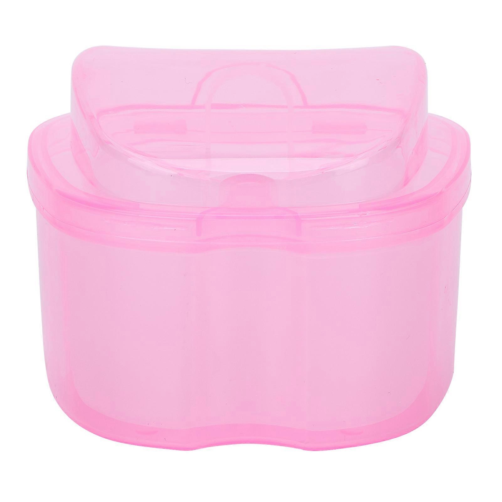 Denture Bath Case Box Soak Container Colored False Teeth Storage Box With Strainer Basketpink