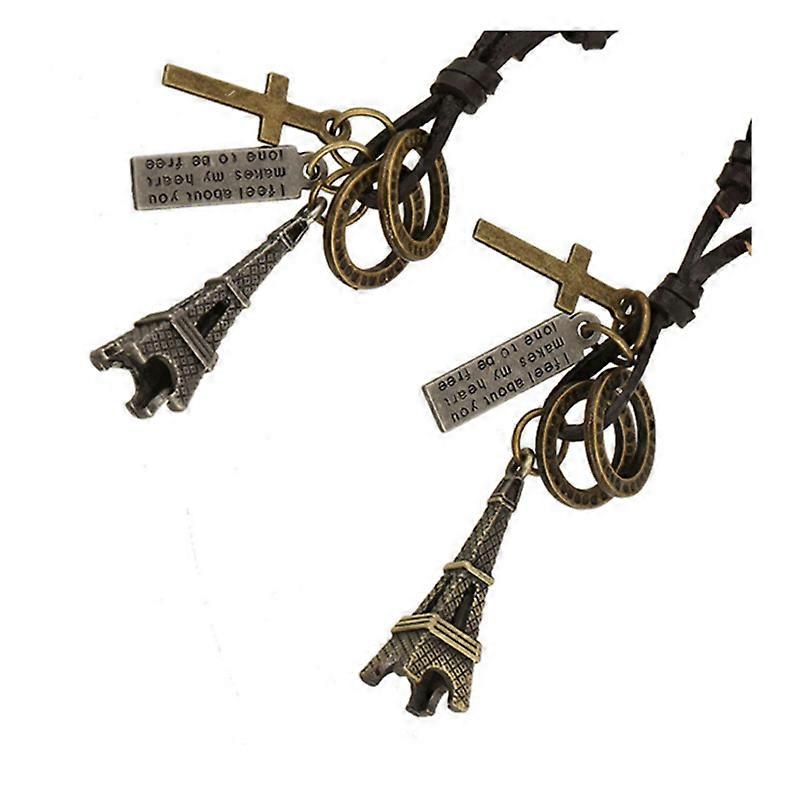 Qingwen Eiffel Tower Pendant Genuine Leather Necklace Factory direct sales Retro Men s Necklace Vintage sweater chain
