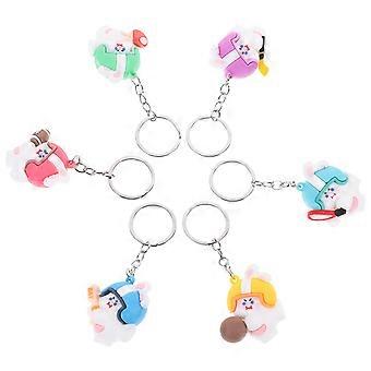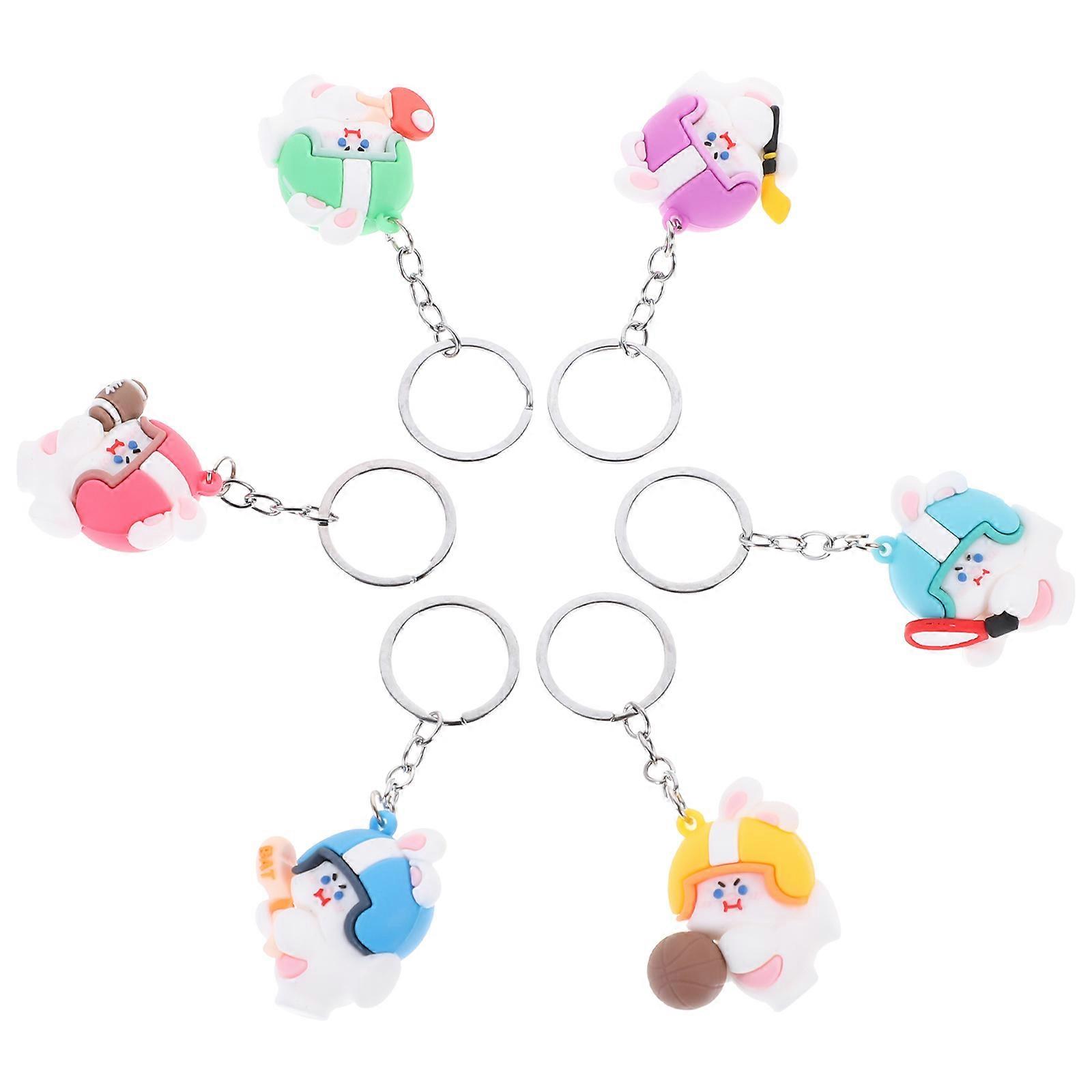 Rabbit Keychain Pendant for Backpack Decor with 6Pcs Rabbit Shape Ornaments