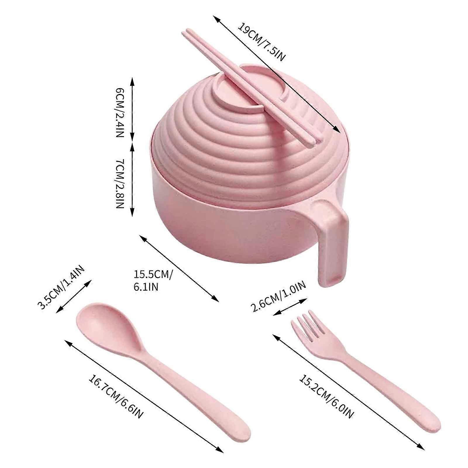 Ramen Bowl Set with Lid, Handle & Chopsticks - Includes Spoon, Fork, Noodle Bowl Compatible with Dorm Room Use - Wheat Straw Material