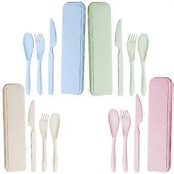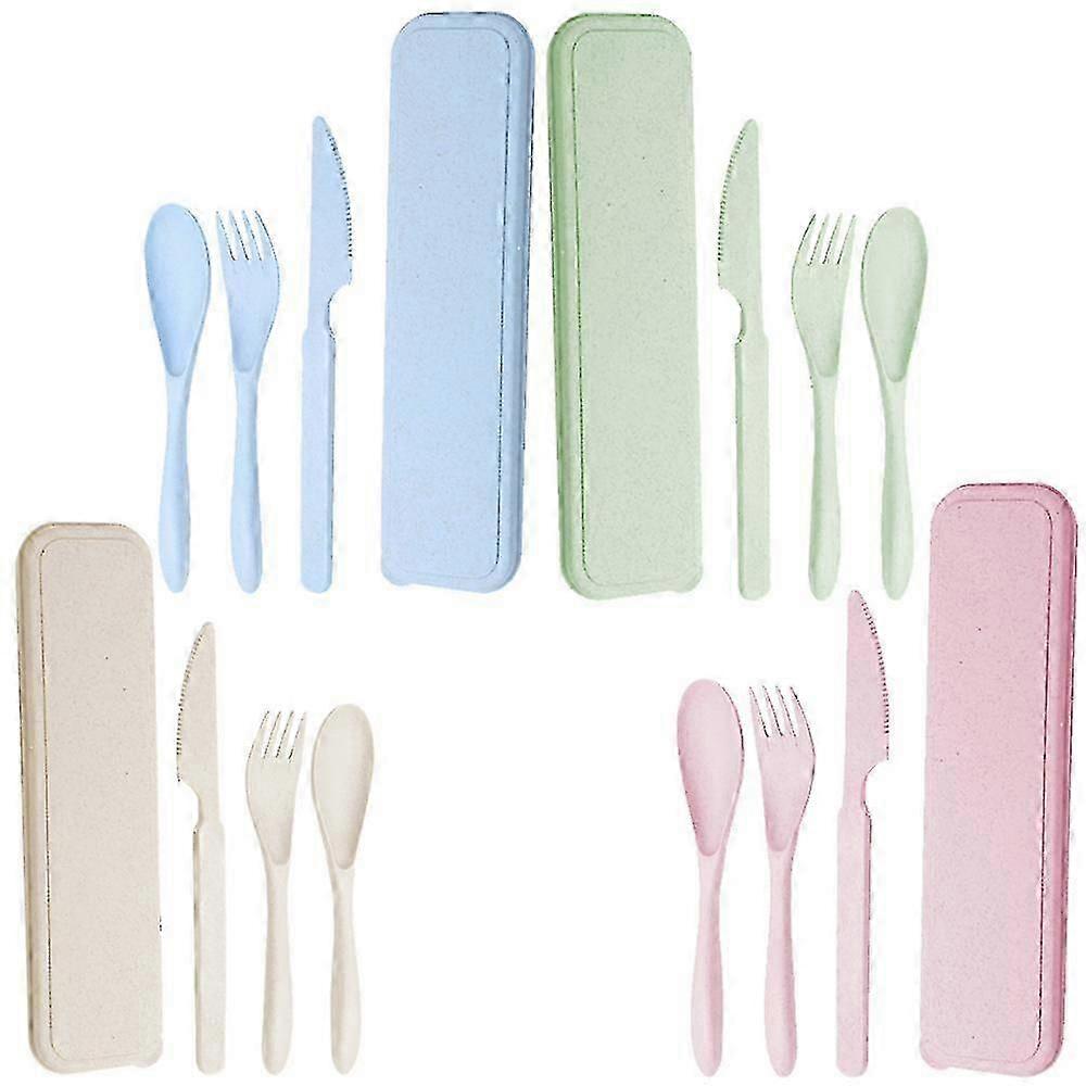 Travel Camping Reusable Utensils Set With Case, 4 Sets Wheat Straw Portable Utensils Set