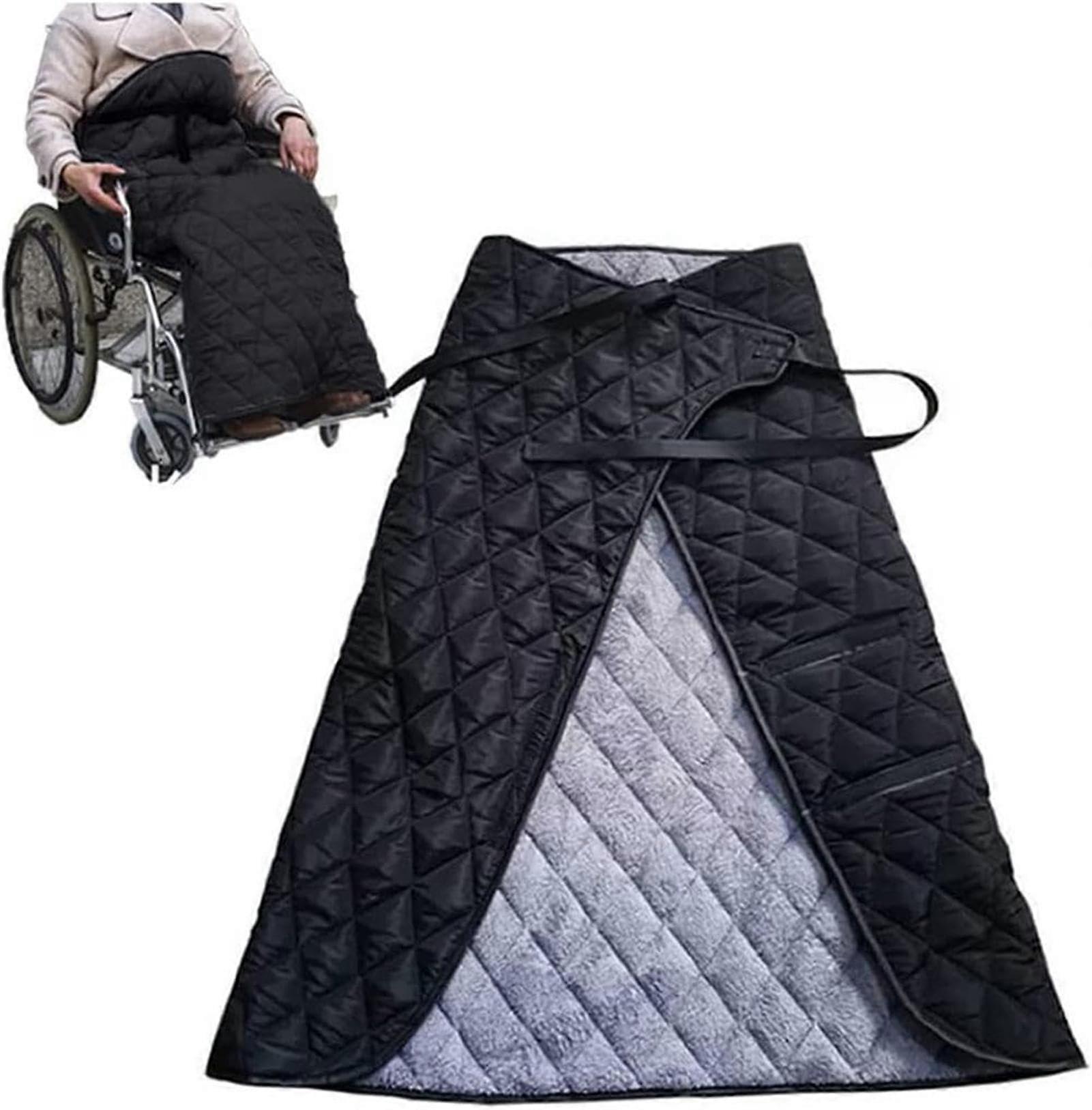 Warm and moisture resistant The waterproof shell and cozy fleece lining keep you warm and comfortable in any weather. Allweather protection and durable design Padded interior for added warmth. The exterior uses a PU coating for windproof and waterproof performance, easily withstanding cold wind. The bottom has a strong protective material to endure kicks and other movements. Ergonomic design for easy use Winter wheelchair warming blanket is easy to put on and take off with a safety sticker controlled opening and closing, and it features adjustable elasticity for a secure fit. Size and care Approx 116 x 120 cm; fits all manual and electric wheelchairs. Can be washed, dehydrated or hand and machine washed. Use scenarios Outdoor winter outings: provides warmth and wind protection during trips or errands in cold conditions. Indoor warmth: keeps you comfortable while resting at home or waiting for transport. Care settings: suitable for use in hospitals or care facilities where wheelchair warmth is needed.