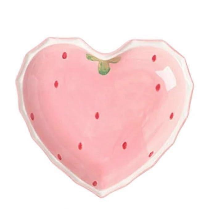 Pink Heart Dessert Plates Set with Strawberry Pattern Ceramic Cake Plates for Parties, 2pcs