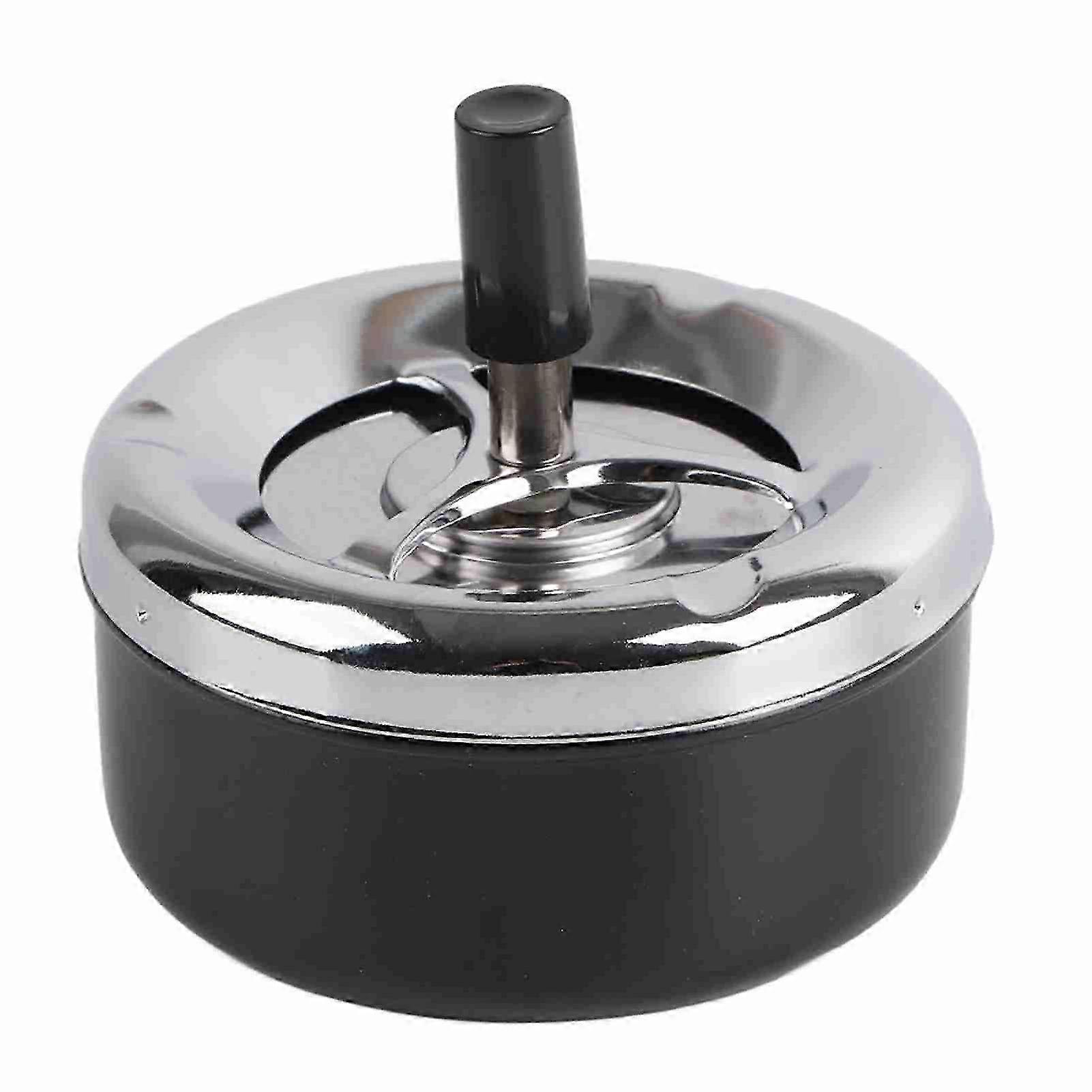 Round Metal Smoking Ashtray with Push-Down Lid for Indoor and Outdoor Use, Durable Portable Ash Tray for Home and Patio