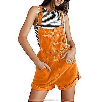 Damen-Latzhose, Shorts, lässiger Sommer-Overall, V-Ausschnitt, ärmellos, lockere Passform, braun, Größe M