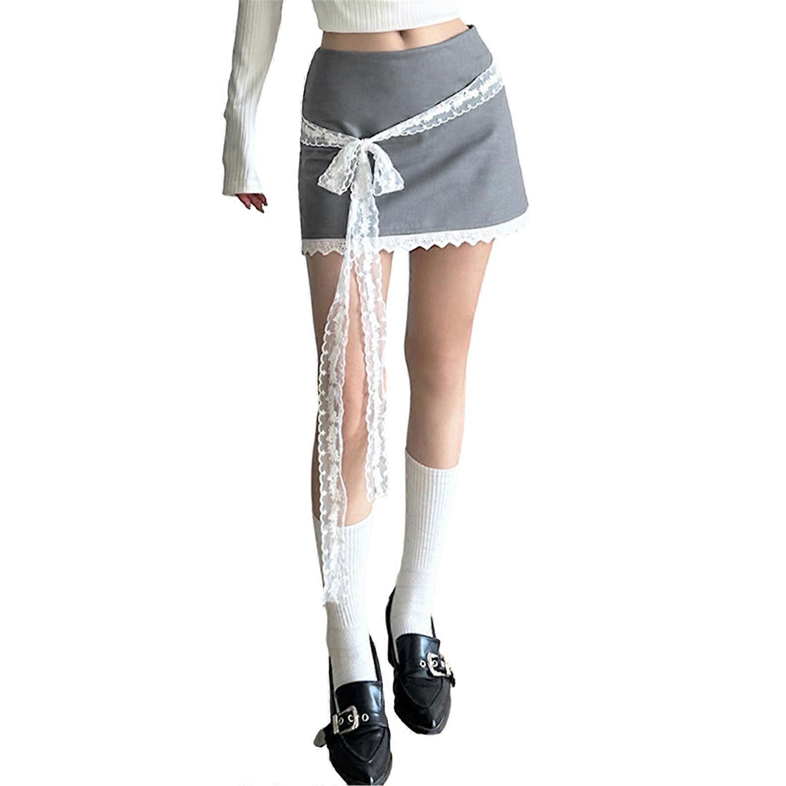Chic Lace Border Mini Skirt Comfortable High Waist Short Dress Perfect for Casual or Formal Wear Gray S