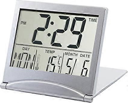 Desk Top Clock Silver Digital LCD Temperature Alarm NEW Office Day Clock