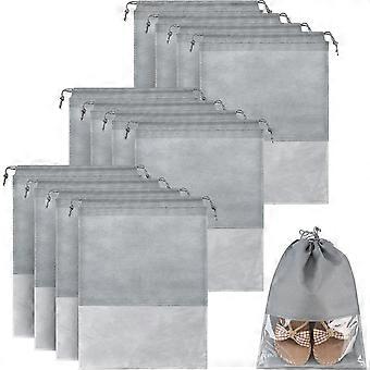 14,2 x 10,6 Zoll Grau 12 Stück Reiseschuh-Aufbewahrungstasche Vlies-Aufbewahrungstasche Tragbare Schuhtasche mit transparentem Fenster für den täglichen und Reisegebrauch12