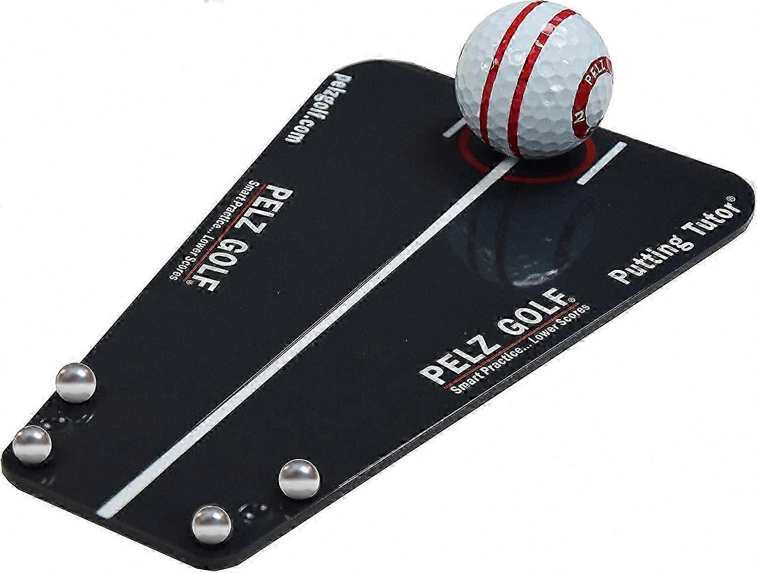 Pelz Putting Tutor helps improve green-reading skills while developing a more consistent putting stroke. It provides immediate feedback to help users understand why putts miss and build better putting fundamentals.The tutor helps users: - Improve green reading - Square the putter face at address - Verify consistent eye position - Develop a reliable, repeatable putting stroke Key features: - A built-in guideline helps aim putts precisely along the intended line - Eye-position stripes allow verification of consistent eye placement at address—essential for solid putting fundamentals - A flat back edge assists in squaring the putter face at address - Two marbles at the front edge indicate whether a putt was struck purely and started on the intended line; if a marble is dislodged, the ball started off-line This feedback helps users: - Understand how much a putt breaks only after striking it well - Distinguish between strokes that start putts on-line versus off-line - Groove a consistent, reliable putting stroke Three adjustable marble gate positions (Standard, Pro, and Super Pro) offer progressive training options. Green-reading assistance: Adjust the tutor’s aim higher or lower to learn how much a putt breaks—well-struck putts will roll into the hole when aligned correctly. Designed to identify squarely struck putts that start rolling on-line. Improves green reading. Suitable for all skill levels. Easy to use.