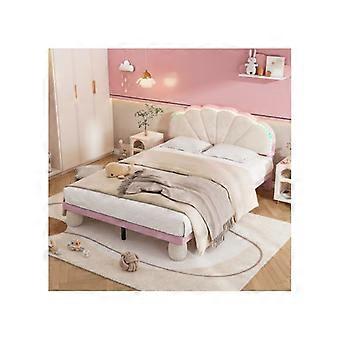 Bett gepolstert mit austauschbaren mehrfarbigen Lichtstreifen, Samt, beige + rosa, 140x200 cm MUVOE