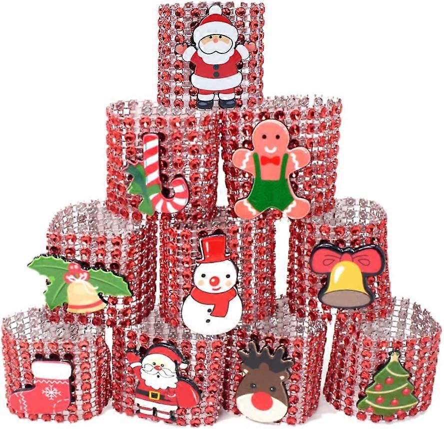 Napkin Rings,Christmas Rhinestone Napkin Ring Holders 10pcs Red