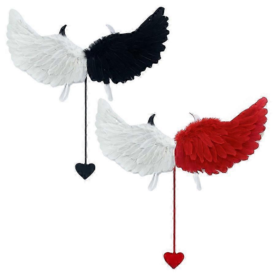 Set of 2 Halloween Feather Wings - Angel & Devil - Black/White & Red/White