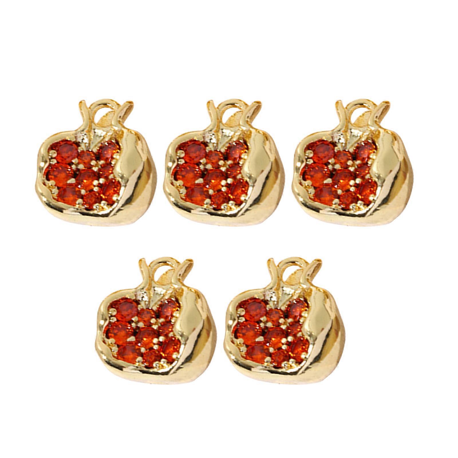 Set of 5 Fashionable Jewelry Pendants 3D Cherry/Pomegranate Charm with Lustrous Zircon Stones Gift for Fashion Lovers
