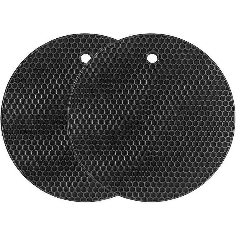 Silicone Trivet Mat Multipurpose Drying Mat Heat Resistant up to 464F, Pot Holder, Waterproof, (2 Pack) Non-Slip, Flexible, Durable (Black, 18cm)