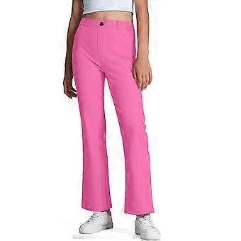 Solid Color Stretchy High-Waisted School Uniform Pants for Girls & Boys, Straight Leg with Pockets, Compatible with Hot Pink, 14-15 Years