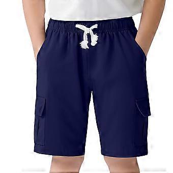 Boys School Uniform Shorts Solid Color Elastic Waist Drawstring Dress Shorts With Pockets Kids Comfort Weekend Shorts,Navy,5-6 Years