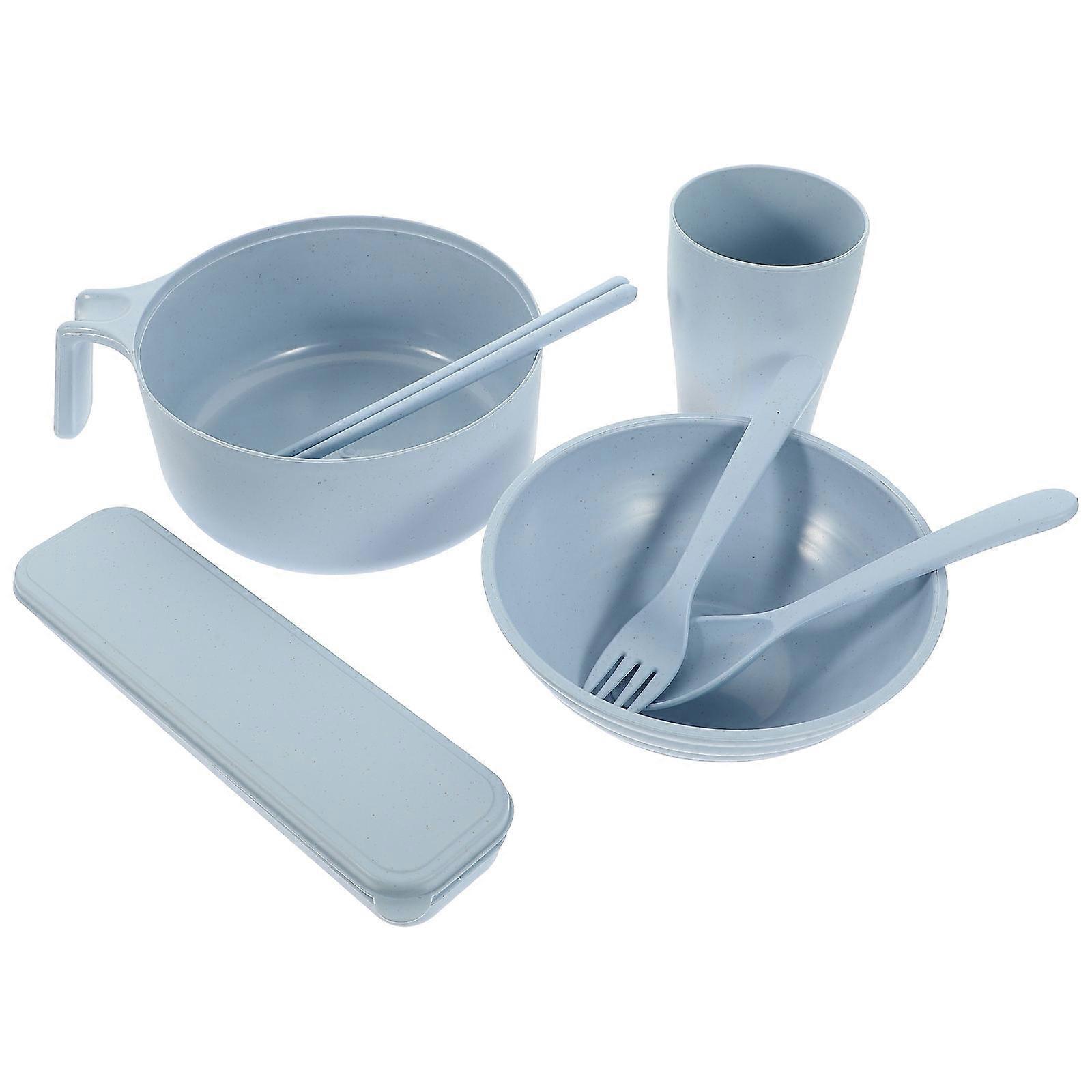 Skyblue Ramen Bowl with Cover and Tableware Made of Synthetic Material for Home Use 7.9 Inches