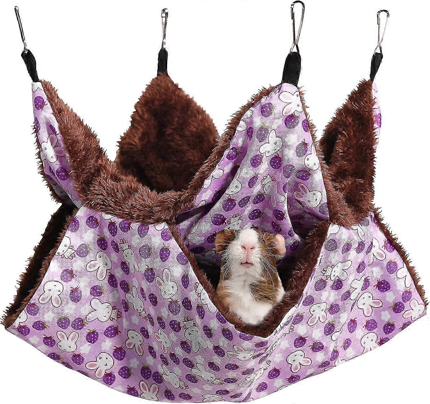 Small animal hammock, 2-layer pet hammock hanging bed for sleeping with 4 metal hooks