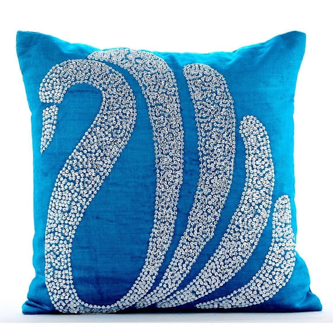 HomeCentric Custom Blue Velvet Pillow Covers 14x14 inch, Pack of 2 - Crystal Swan Design