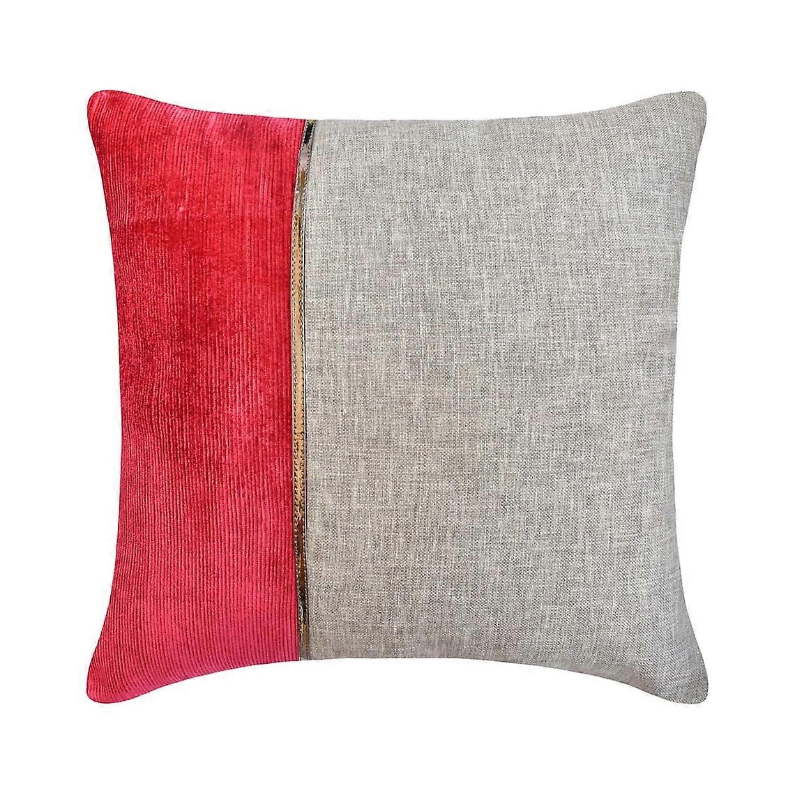 HomeCentric Decorative Pillow Covers Red Pack of 2, 18"x18" Linen Patchwork & Corduroy for Sofa, Modern Style - Winterberry Red