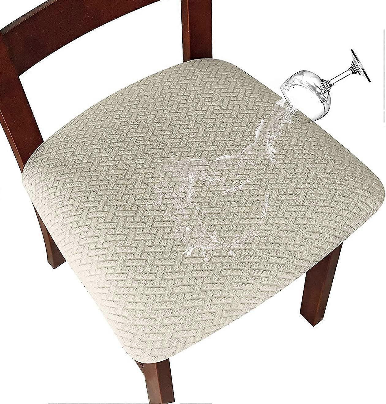 Stretch Chair Seat Covers Washable Jacquard Waterproof Dining Chair Seat Slipcovers Set of 2