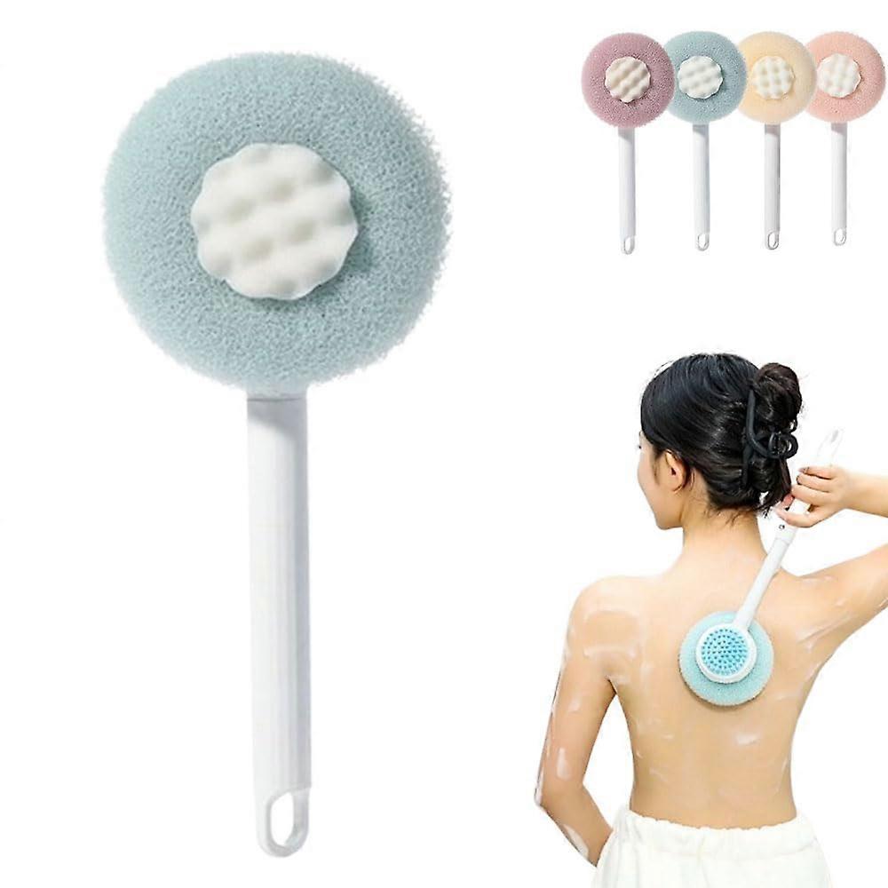 Super Soft Sunflower Bath Ball, Upgrade 2in1 Bath Brush with Long Handle (Blue)