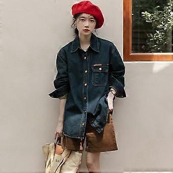 Vintage Dunkelblau Jeansjacke Damen Frühling und Herbst Lockeres lässiges Blusenhemd