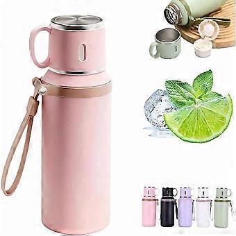 2-in-1-Edelstahl-Vakuumisolierte Flasche mit auslaufsicherem Deckel und Becher, Weithalsöffnung, hält Getränke heiß und kalt – ideal für Reisen, Fitnessstudio und Schule – kompatibel mit Standard-Trinkflaschen