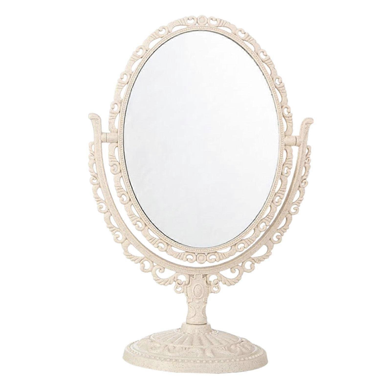 Tabletop Makeup Mirror Desk Vanity Mirror Double Sided Vintage Desktop Stand Mirror Rotation Platform Mirror for Office Hotel Beige