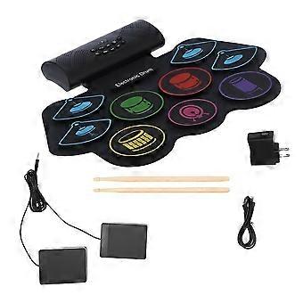 Elektronisches Schlagzeug, handgerollte Trommel, 9-Pad, MIDI-Schnittstelle, unterstützt DTX-Spiele, tragbares Schlagzeug mit Drumsticks und Pedalen